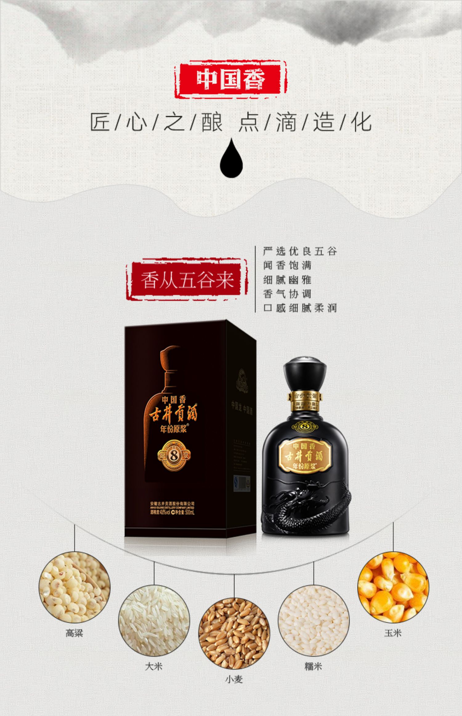 古井贡酒年份原浆中国香古8 50度500ml*1瓶装浓香型
